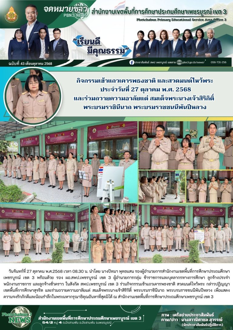 วันอังคารที่ 13 กรกฎาคม พ.ศ. 2564 เวลา 09.30 น. ดร.ไท พานนนท์ ผู้อำนวยการสำนักงานเขตพื้นที่การศึกษาประถมศึกษาเพชรบูรณ์ เขต 3 พร้อมด้วย นายธีรภัทร์ ภาวะรีย์ รอง ผอ.สพป.เพชรบูรณ์ เขต 3 และนางมัทณา ชาวบ้านกร่าง ศึกษานิเทศก์ เข้าร่วมการประชุมเตรียมความพร้อมการสอบ O-NET ปีการศึกษา 2564 เพื่อประชุมชี้แจงศูนย์สอบ การทดสอบทางการศึกษาระดับชาติขั้นพื้นฐาน ( O-NET ) ชั้นประถมศึกษาปีที่ 6 และชั้นมัธยมศึกษาปีที่ 3 ปีการศึกษา 2564 ณ ห้องประชุมบึงสามพัน สำนักงานเขตพื้นที่การศึกษาประถมศึกษาเพชรบูรณ์ เขต 3