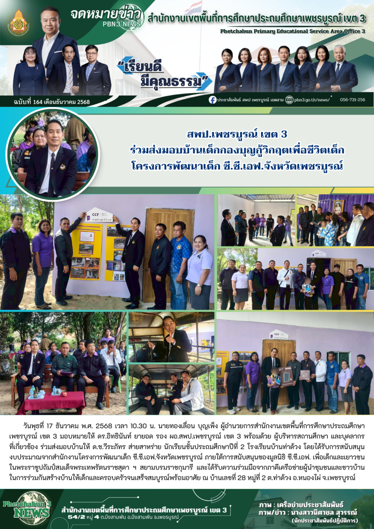 // วันอังคารที่ 18 มิถุนายน พ.ศ. 2567 เวลา 08.30 น. นำโดย นายทองเลื่อน บุญเพ็ง ผู้อำนวยการสำนักงานเขตพื้นที่การศึกษาประถมศึกษาเพชรบูรณ์ เขต 3 พร้อมด้วย รอง ผอ.สพป.เพชรบูรณ์ เขต 3 ผู้อำนวยการกลุ่ม ลูกจ้างประจำ พนักงานราชการ และลูกจ้างชั่วคราว ในสังกัด สพป.เพชรบูรณ์ เขต 3 ร่วมกิจกรรมเข้าแถวเคารพธงชาติ สวดมนต์ไหว้พระ กล่าวปฏิญญาเขตพื้นการศึกษาที่สุจริต ณ สำนักงานเขตพื้นที่การศึกษาประถมศึกษาเพชรบูรณ์ เขต 3 //