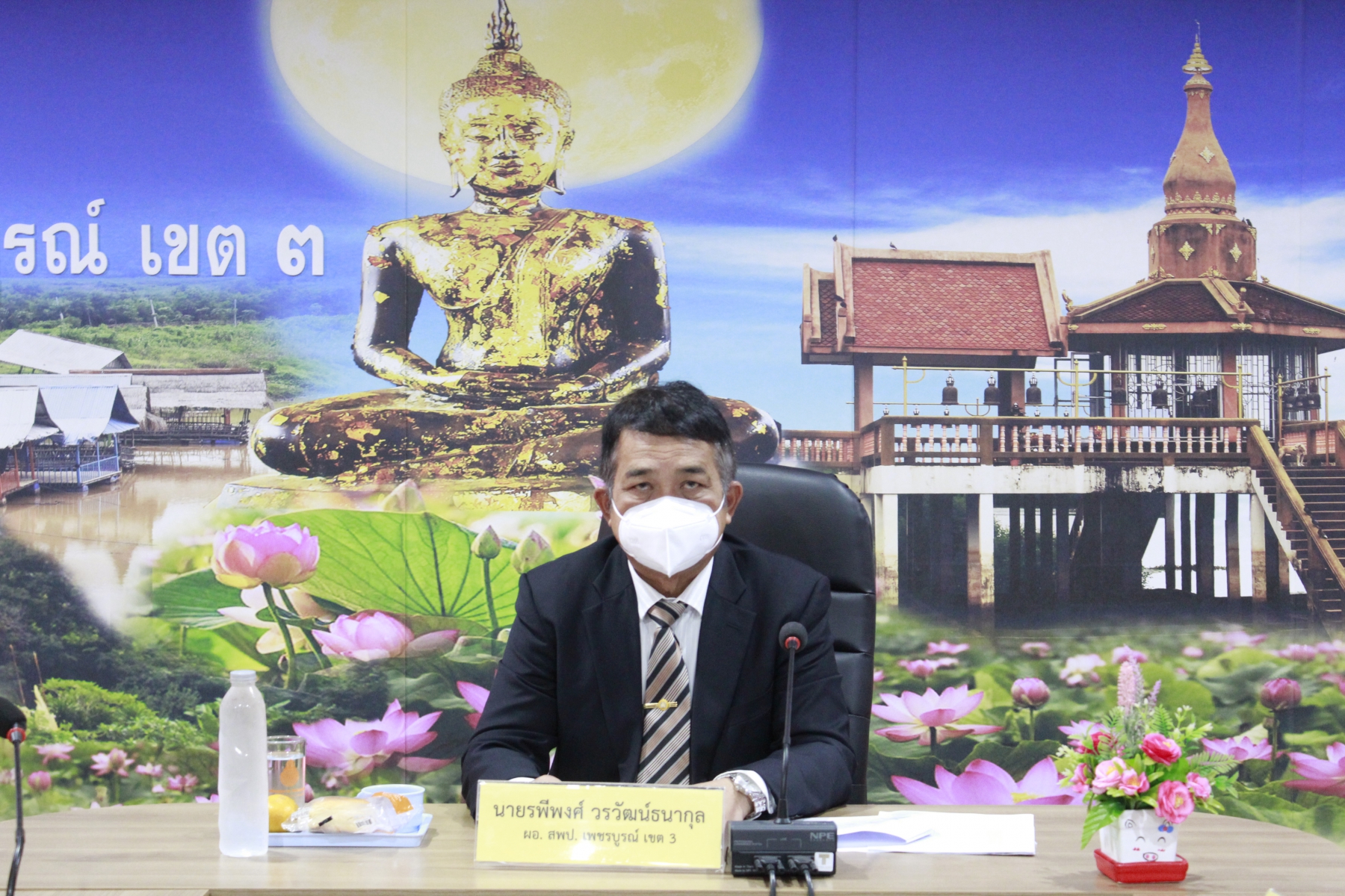 วันศุกร์ที่ 26 พฤศจิกายน พ.ศ. 2564 เวลา 09.00 น. นายรพีพงศ์ วรวัฒนธนากุล ผู้อำนวยการสำนักงานเขตพื้นที่การศึกษาประถมศึกษาเพชรบูรณ์ เขต 3 พร้อมด้วย รอง ผอ.สพป.เพชรบูรณ์ เขต 3 ผู้อำนวยการกลุ่ม ข้าราชการและบุคลากรที่มีส่วนเกี่ยวข้อง เข้าร่วมประชุมชี้แจงการนำเข้าข้อมูลโครงการ/การดำเนินงานของสำนักงานเขตพื้นที่การศึกษาในระบบติดตามและประเมินผลแห่งชาติ ( eMENSER ) พ.ศ.2565 เพื่อเป็นแนวทางในการนำเข้าข้อมูลโครงการ/การดำเนินงานของสำนักงานเขตพื้นที่การศึกษา ให้เป็นไปด้วยความเรียบร้อยตามที่สำนักงานพัฒนาเศรษฐกิจและวังคมแห่งชาติกำหนด ผ่านระบบ Video Conference โปรแกรม Zoom ณ ห้องประชุมหนองไผ่ สำนักงานเขตพื้นที่การศึกษาประถมศึกษาเพชรบูรณ์ เขต 3