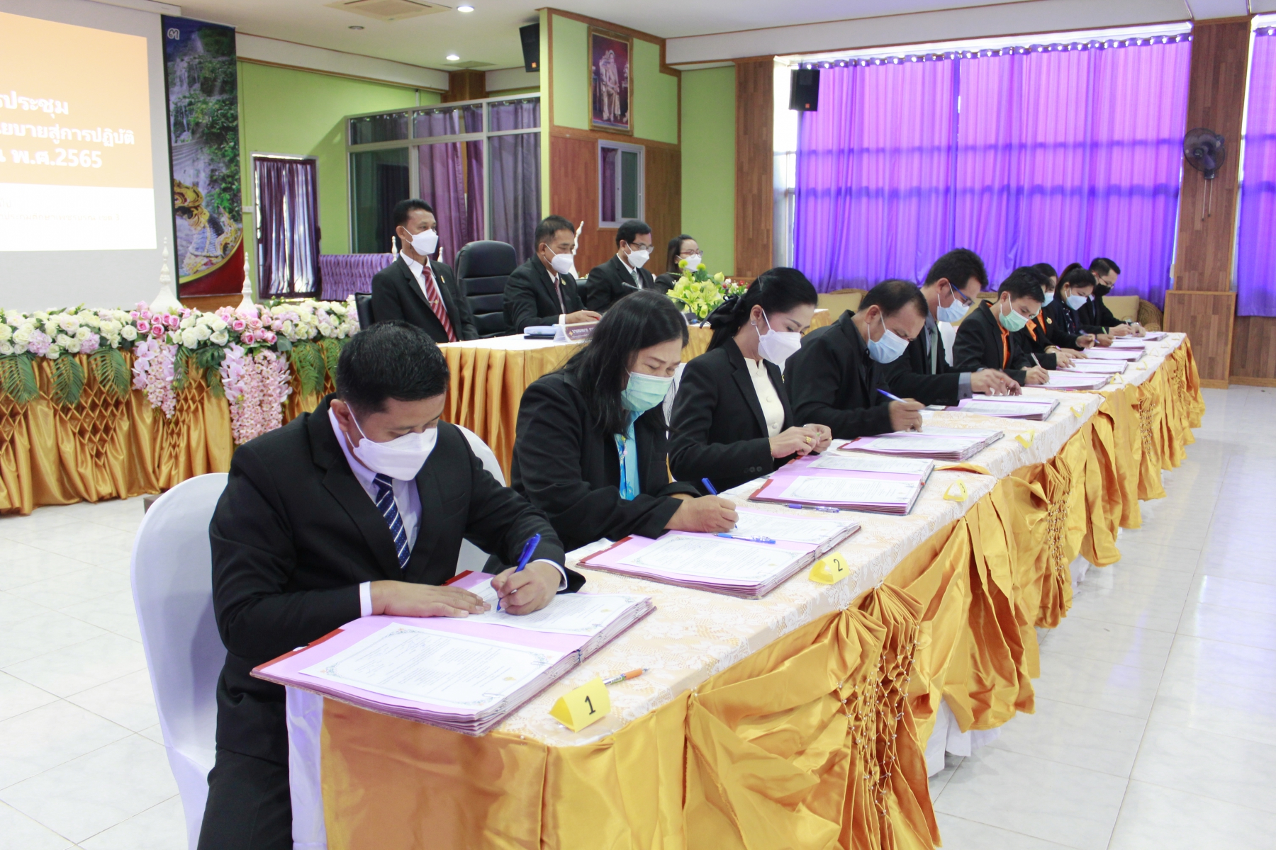 วันอังคารที่ 28 ธันวาคม พ.ศ. 2564 เวลา 09.00 น. นายรพีพงศ์ วรวัฒน์ธนากุล ผู้อำนวยการสำนักงานเขตพื้นที่การศึกษาประถมศึกษาเพชรบูรณ์ เขต 3 เป็นประธานการประชุมเชิงปฏิบัติการขับเคลื่อนนโยบายสู่การปฏิบัติ ประจำปีงบประมาณ พ.ศ.2565 โดยมี รอง ผอ.สพป.เพชรบูรณ์ เขต 3 ผู้บริหารสถานศึกษา ผู้อำนวยการกลุ่ม ข้าราชการและบุคลากรทางการศึกษา กล่าวคำปฏิญญาเขตพื้นที่การศึกษาสุจริต ประกาศเจตจำนงสุจริตในการบริหารงานสำนักงานเขตพื้นที่การศึกษาประถมศึกษาเพชรบูรณ์ เขต 3 พิธีลงนาข้อตกลง (MOU) ในการสร้างเสริมคุณธรรม จริยธรรมและธรรมภิบาลและลงนามข้อตกลงเกี่ยวกับการปฏิบัติงาน และแจ้งข้อราชการ มอบนโยบายในการขับเคลื่อนการศึกษา โดยมีผู้บริหารสถานศึกษาในสังกัด สพป.เพชรบูรณ์ เขต 3 เข้าร่วมประชุม ณ ห้องประชุมวิเชียรบุรี สำนักงานเขตพื้นที่การศึกษาประถมศึกษาเพชรบูรณ์ เขต 3