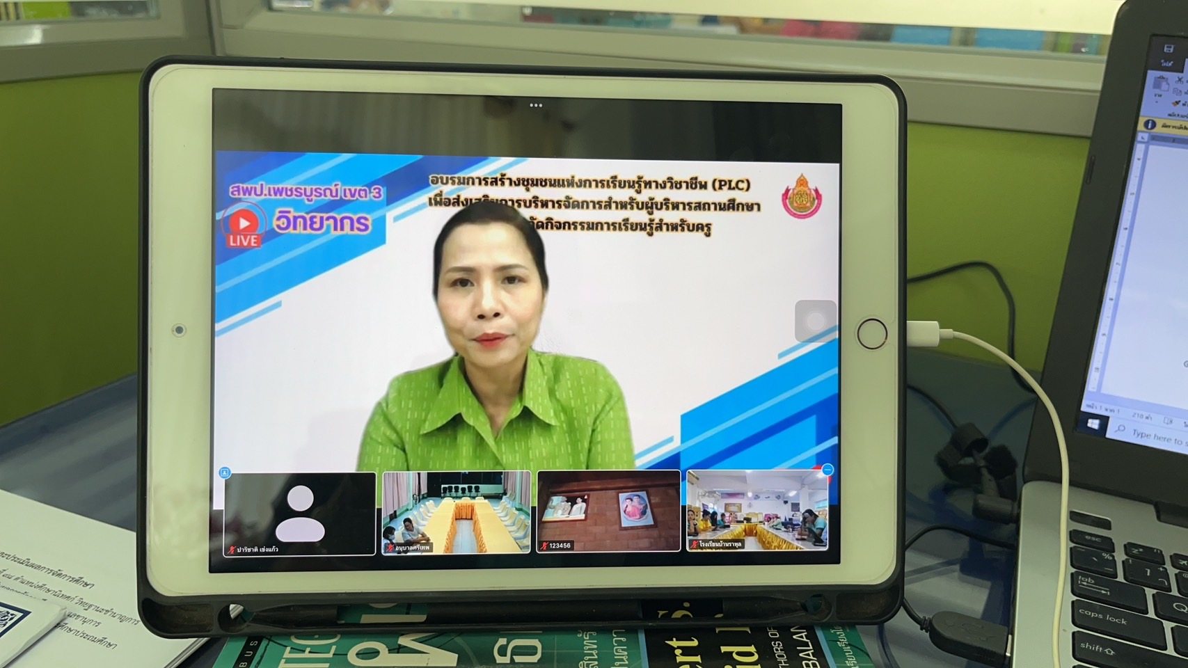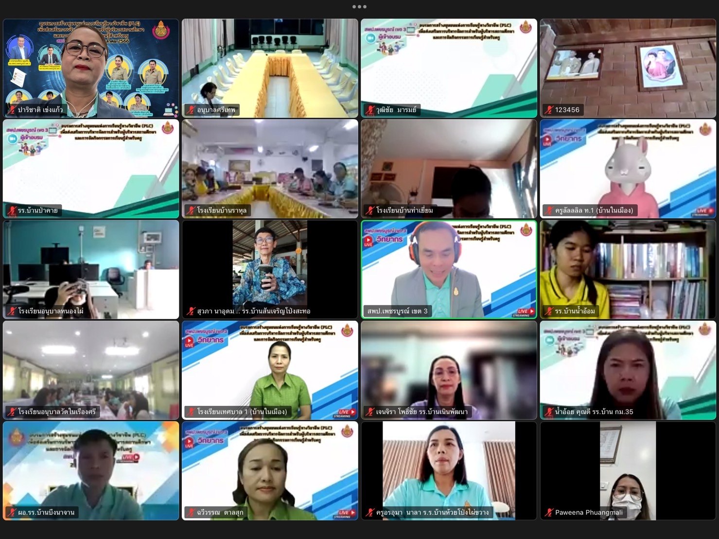 วันพุธที่ 25 ตุลาคม พ.ศ. 2566 เวลา 09.00 น. นายทองเลื่อน บุญเพ็ง ผู้อำนวยการสำนักงานเขตพื้นที่การศึกษาประถมศึกษาเพชรบูรณ์ เขต 3 มอบหมายให้ นายธรัตพนธ์ วิทย์บุญประคม รอง ผอ.สพป.เพชรบูรณ์ เขต 3 เป็นประธานการอบรมการสร้างชุมชนแห่งการเรียนรู้ทางวิชาชีพ เพื่อส่งเสริมการบริหารจัดการสำหรับผู้บริหารสถานศึกษาและการจัดการเรียนรู้สำหรับครู สังกัด สพป.เพชรบูรณ์ เขต 3 พร้อมด้วย ดร.ปาริชาติ เข่งแก้ว ผอ.กลุ่มนิเทศติดตามและประเมินผลการจัดการศึกษา ศึกษานิเทศก์ สังกัด สพป.เพชรบูรณ์ เขต 3 โดยมี ผู้บริหารสถานศึกษา ข้าราชการครูและบุคลากรทางการศึกษา เข้าร่วม และได้รับเกียรติจาก ผู้อำนวยการโรงเรียน รองผู้อำนวยการโรงเรียนเรียน ข้าราชการครู โรงเรียนเทศบาล 1 (บ้านในเมือง) เป็นวิทยากรในการอบรม ผ่านระบบ Video Conference ณ ห้องกลุ่มนิเทศติดตามและประเมินผลการจัดการศึกษา สำนักงานเขตพื้นที่การศึกษาประถมศึกษาเพชรบูรณ์ เขต 3