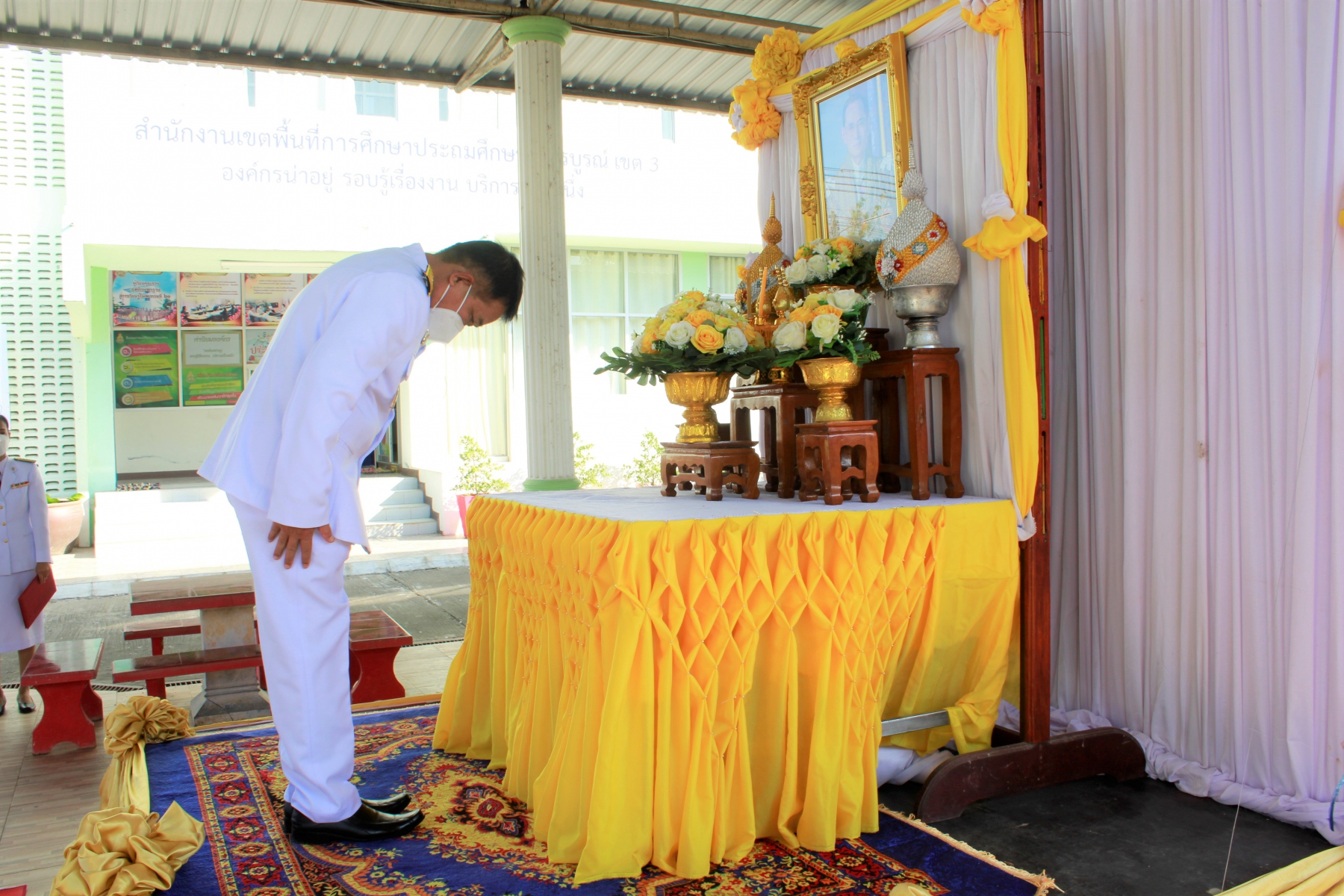วันศุกร์ที่ 3 ธันวาคม พ.ศ. 2564 เวลา 09.00 น. นายรพีพงศ์ วรวัฒน์ธนากุล  ผู้อำนวยการสำนักงานเขตพื้นที่การศึกษาประถมศึกษาเพชรบูรณ์ เขต 3 พร้อมด้วย รอง ผอ.สพป.เพชรบูรณ์ เขต 3  ข้าราชการและบุคลากรใน สพป.เพชรบูรณ์ เขต 3 เข้าร่วมกิจกรรมเนื่องในวันคล้ายวันพระบรมราชสมภพ พระบาทสมเด็จพระบรมชนกาธิเบศร มหาภูมิพลอดุลยเดชมหาราช บรมนาถบพิตร วันชาติ และวันพ่อแห่งชาติ 5 ธันวาคม 2564 ถวายพานพุ่มราชสักระถวายราชสดุดีและถวายบังคม เพื่อสดุดีพระเกียรติคุณและน้อมรำลึกในพระมหากรุณาธิคุณของพระบาทสมเด็จพระบรมชนกาธิเบศร มหาภูมิพลอดุลยเดชมหาราช บรมนาถบพิตร ณ บริเวณโดเอนกประสงค์ สำนักงานเขตพื้นที่การศึกษาประถมศึกษาเพชรบูรณ์ เขต 3