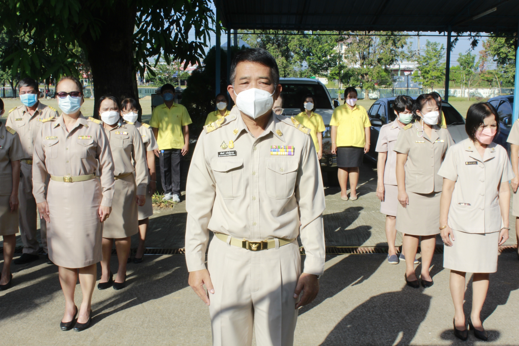วันจันทร์ที่ 15 พฤศจิกายน พ.ศ.2564 นายรพีพงศ์ วรวัฒน์ธนากุล ผู้อำนวยการสำนักงานเขตพื้นที่การศึกษาประถมศึกษาเพชรบูรณ์ เขต 3 พร้อมด้วยรองผู้อำนวยการเขตพื้นที่การศึกษาประถมศึกษาเพชรบูรณ์ เขต 3 ผู้อำนวยการกลุ่ม ลูกจ้างประจำ พนักงานราชการ และลูกจ้างชั่วคราว ในสังกัด สพป.เพชรบูรณ์ เขต 3 ร่วมกิจกรรมเข้าแถวหน้าเสาธง สวดมนต์ไหว้พระ กล่าวปฏิญญาเขตพื้นการศึกษาที่สุจริต ณ สำนักงานเขตพื้นที่การศึกษาประถมศึกษาเพชรบูรณ์ เขต 3