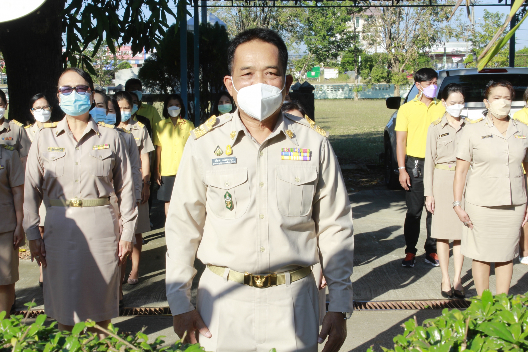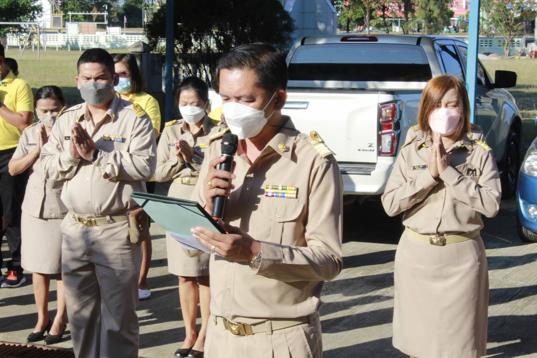 วันจันทร์ที่ 13 ธันวาคม พ.ศ.2564 นายรพีพงศ์ วรวัฒน์ธนากุล ผู้อำนวยการสำนักงานเขตพื้นที่การศึกษาประถมศึกษาเพชรบูรณ์ เขต 3 พร้อมด้วยรองผู้อำนวยการเขตพื้นที่การศึกษาประถมศึกษาเพชรบูรณ์ เขต 3 ผู้อำนวยการกลุ่ม ลูกจ้างประจำ พนักงานราชการ และลูกจ้างชั่วคราว ในสังกัด สพป.เพชรบูรณ์ เขต 3 ร่วมกิจกรรมเข้าแถวหน้าเสาธง สวดมนต์ไหว้พระ กล่าวปฏิญญาเขตพื้นการศึกษาที่สุจริต ณ สำนักงานเขตพื้นที่การศึกษาประถมศึกษาเพชรบูรณ์ เขต 3