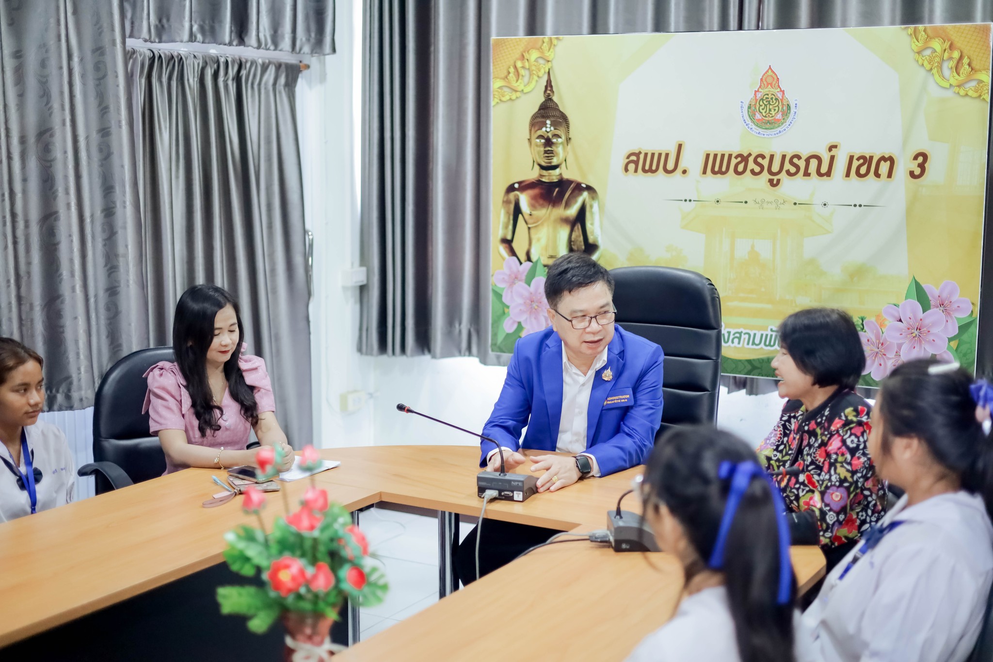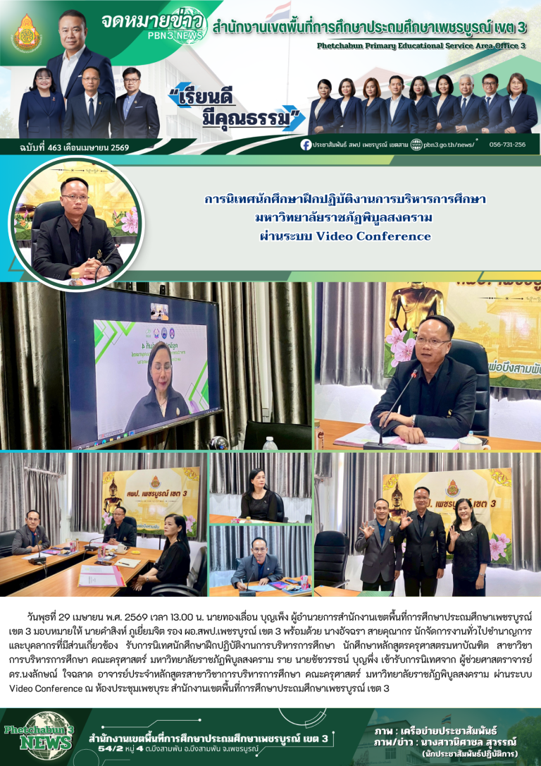 วันพฤหัสบดีที่ 24 เมษายน พ.ศ.2568 เวลา 14.30 น. นายทองเลื่อน บุญเพ็ง ผู้อำนานวยการสำนักงานเขตพื้นที่การศึกษาประถมศึกษาเพชรบูรณ์ เขต 3 มอบหมายให้ นายคำปุน เสนศรี รองผู้อำนวยการสำนักงานเขตพื้นที่การศึกษาประถมศึกษาเพชรบูรณ์ เขต 3 พร้อมด้วย นางสาวพรรณทิพย์ พิมพ์ภูเขียว ผู้อำนวยการกลุ่มส่งเสริมการจัดการศึกษา และนางสาวอภิรดี บัวสำลี นักวิชาการศึกษา ติดตามประเมินผลโครงการส่งเสริมการมีรายได้ให้แก่นักเรียน (ทุนแลกงาน) ประจำปี พ.ศ.2568 เพื่อตรวจเยี่ยมสร้างขวัญกำลังใจให้กับนักเรียน ณ ห้องประชุมเพชรบุระ สำนักงานเขตพื้นที่การศึกษาประถมศึกษาเพชรบูรณ์ เขต 3 การเข้าร่วมโครงการฯ นักเรียนทั้ง 3 คนได้สะท้อนถึงประสบการณ์ที่ดีที่ตนได้รับทำให้ค้นพบศักยภาพตนเอง และเกิดแรงบันดาลใจในการศึกษาต่อ พร้อมทั้งขอบคุณโครงการฯที่ได้ให้โอกาสแก่นักเรียน