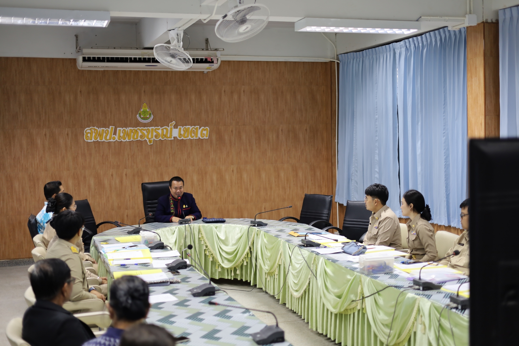 วันศุกร์ที่ 24 พฤศจิกายน พ.ศ. 2566 เวลา 10.30 น. นายทองเลื่อน บุญเพ็ง ผู้อำนวยการสำนักงานเขตพื้นที่การศึกษาประถมศึกษาเพชรบูรณ์ เขต 3 เป็นประธานพิธีประดับอินทรธนูและปฐมนิเทศ ข้าราชการครูและบุคลากรทางการศึกษา “ตำแหน่งครูผู้ช่วย” สังกัด สพป.เพชรบูรณ์ เขต 3 พร้อมด้วย รอง ผอ.สพป.เพชรบูรณ์ เขต 3 และผู้อำนวยการกลุ่ม ข้าราชการและเจ้าหน้าที่กลุ่มบริหารงานบุคคุล โดยมี ข้าราชการครู ตำแหน่งครูผู้ช่วย จำนวน 6 คน เข้าร่วม เพื่อรับทราบแนวทางการปฏิบัติตน ปฏิบัติงาน การเป็นข้าราชการที่ดี ณ ห้องประชุมบึงสามพันสำนักงานเขตพื้นที่การศึกษาประถมศึกษาเพชรบูรณ์ เขต 3