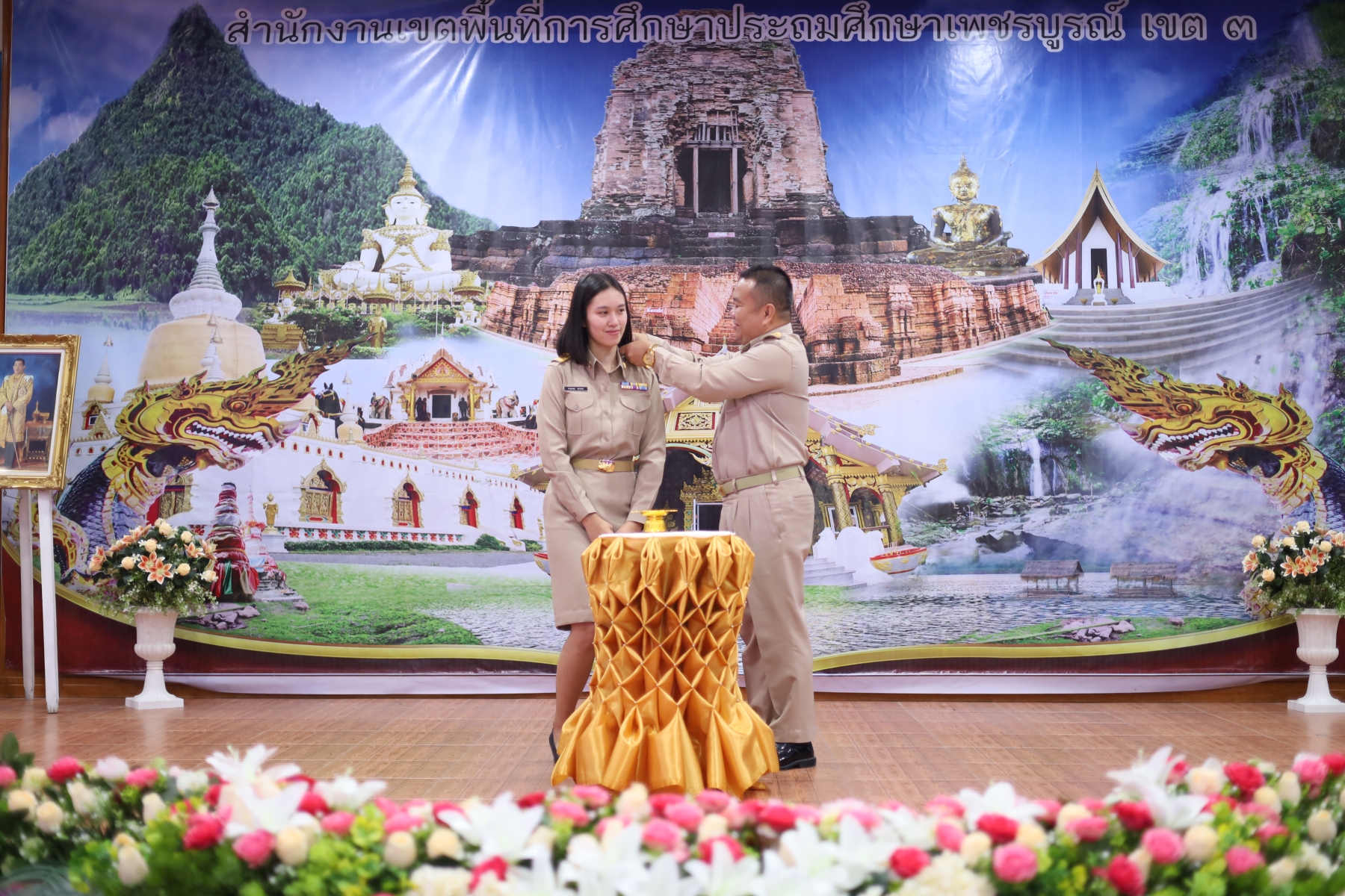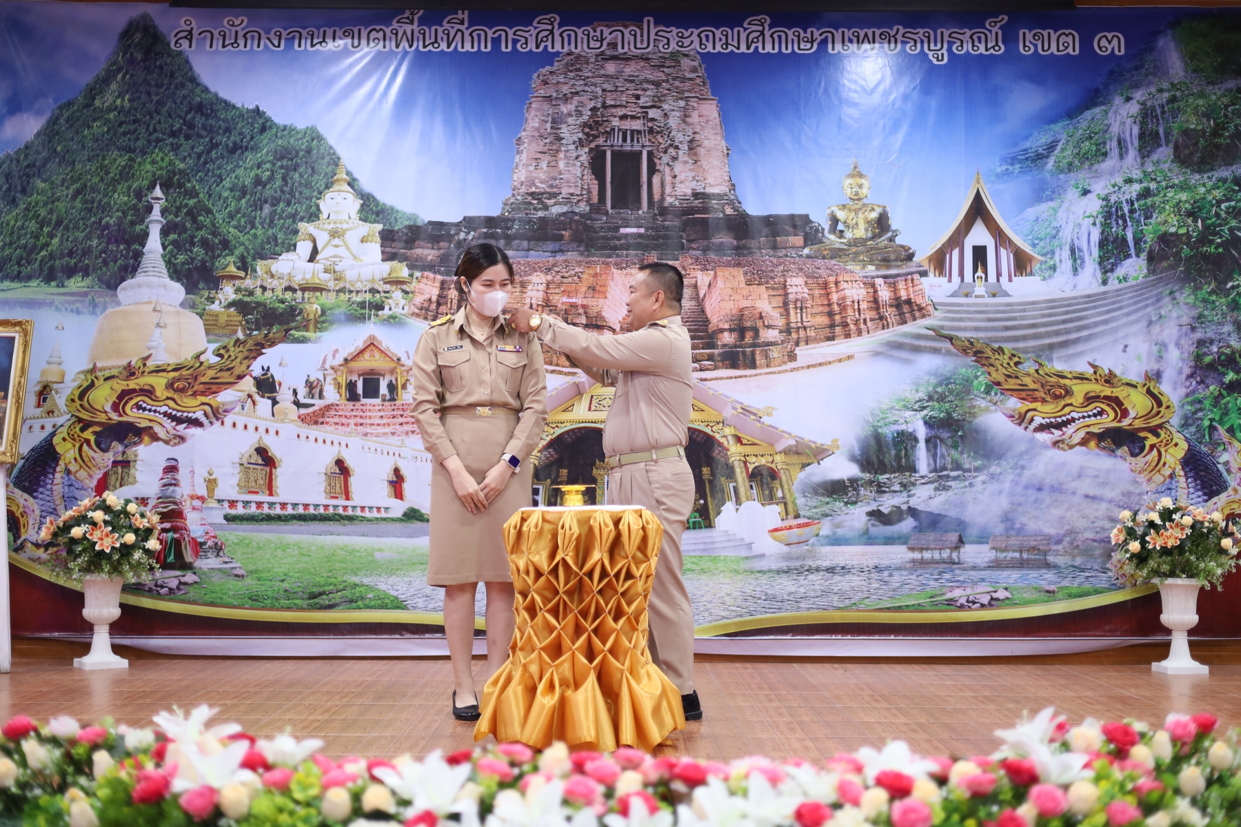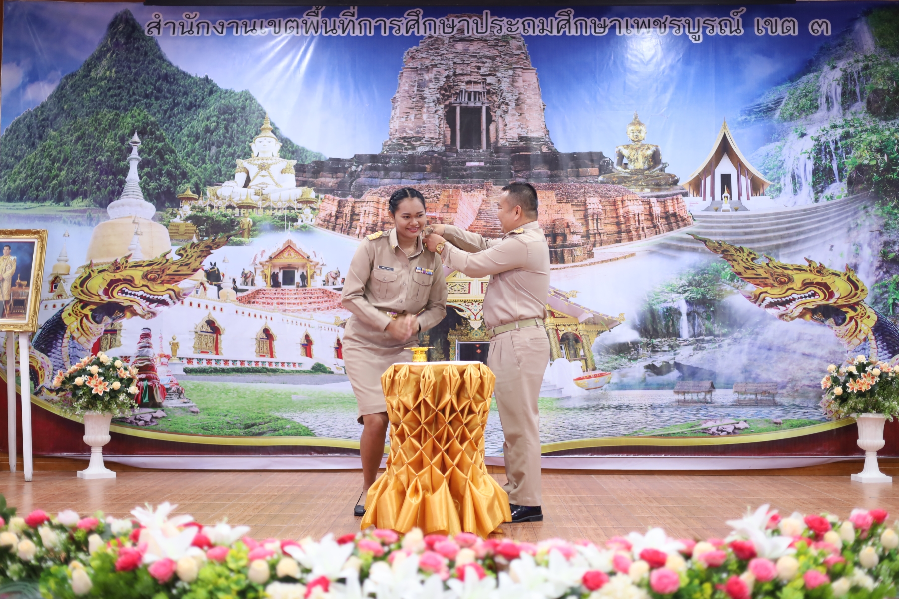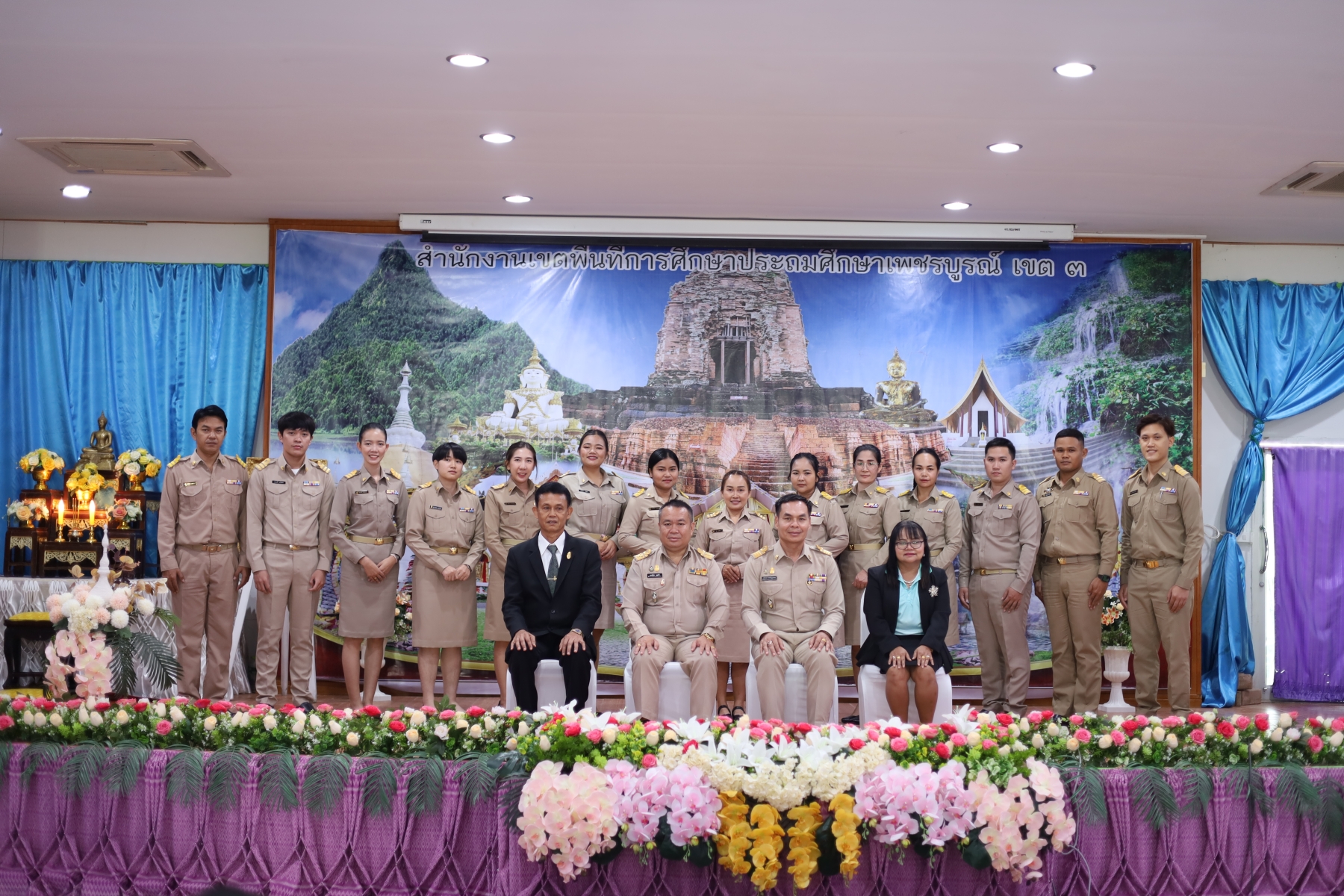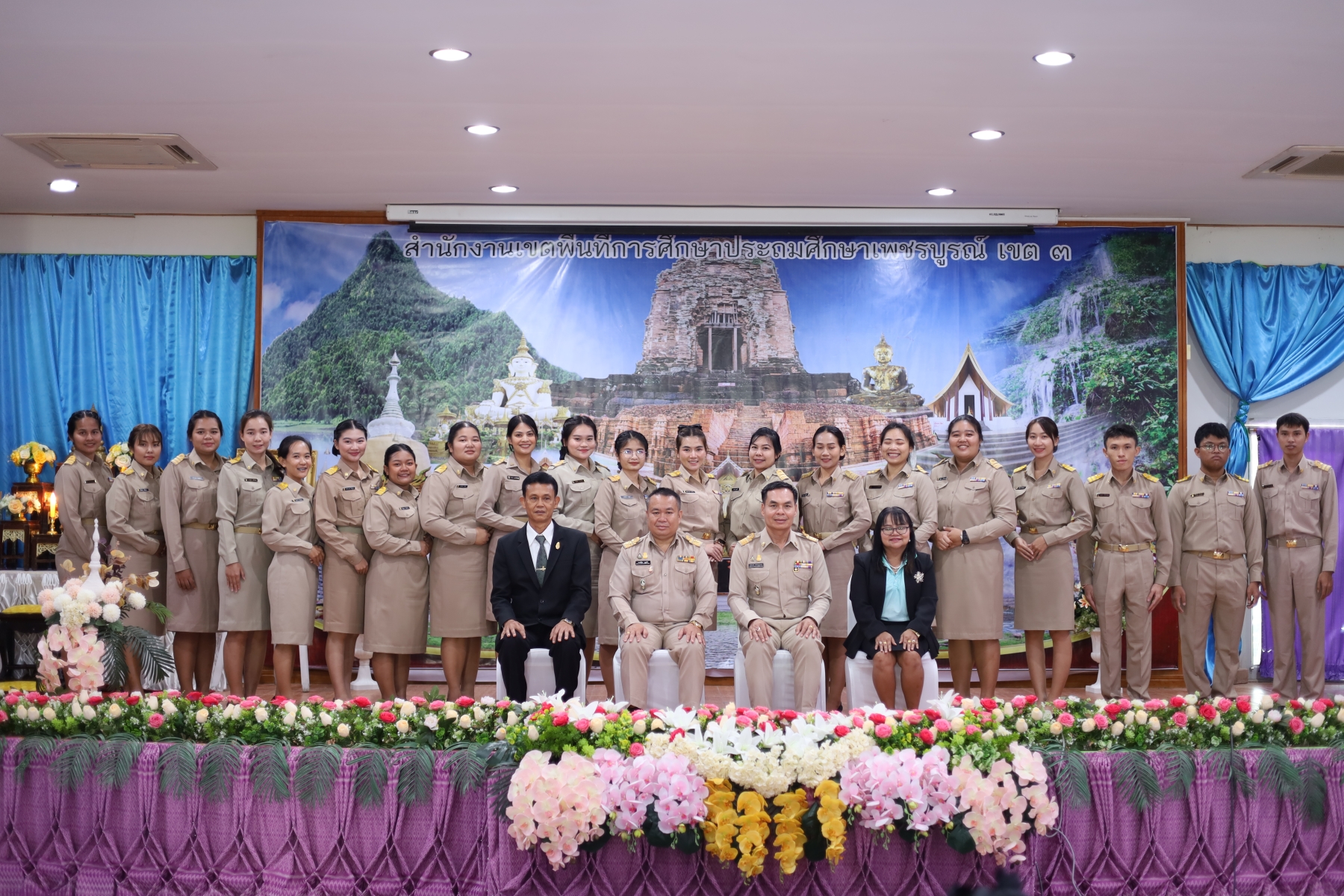 วันพุธที่ 1 พฤศจิกายน พ.ศ. 2566 เวลา 09.00 น. นายทองเลื่อน บุญเพ็ง ผู้อำนวยการสำนักงานเขตพื้นที่การศึกษาประถมศึกษาเพชรบูรณ์ เขต 3 เป็นประธานพิธีประดับอินทรธนูและปฐมนิเทศ ข้าราชการครูและบุคลากรทางการศึกษา “ตำแหน่งครูผู้ช่วย” สังกัด สพป.เพชรบูรณ์ เขต 3 พร้อมด้วย รอง ผอ.สพป.เพชรบูรณ์ เขต 3 และผู้อำนวยการกลุ่ม โดยมี ข้าราชการครู ตำแหน่งครูผู้ช่วย จำนวน 83 คน เข้าร่วม เพื่อรับทราบแนวทางการปฏิบัติตน ปฏิบัติงาน การเป็นข้าราชการที่ดี ณ ห้องประชุมวิเชียรบุรี สำนักงานเขตพื้นที่การศึกษาประถมศึกษาเพชรบูรณ์ เขต 3