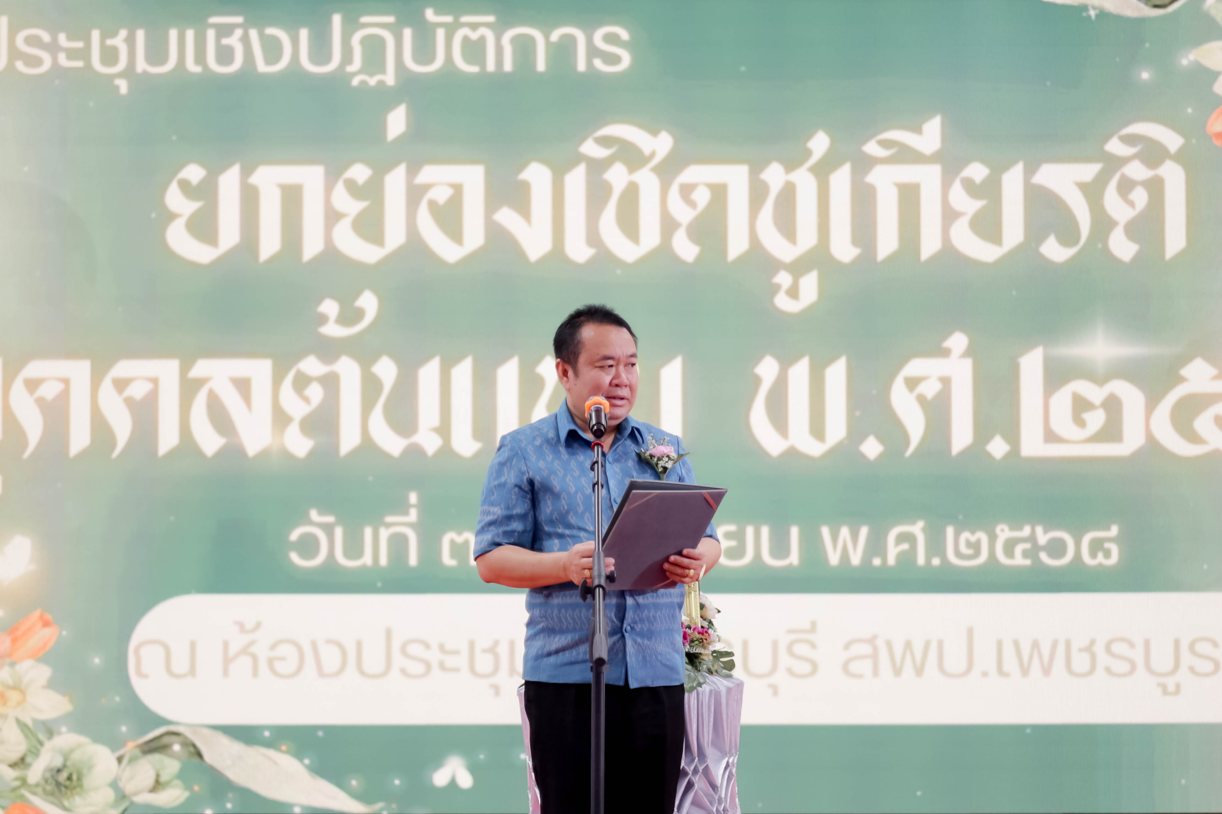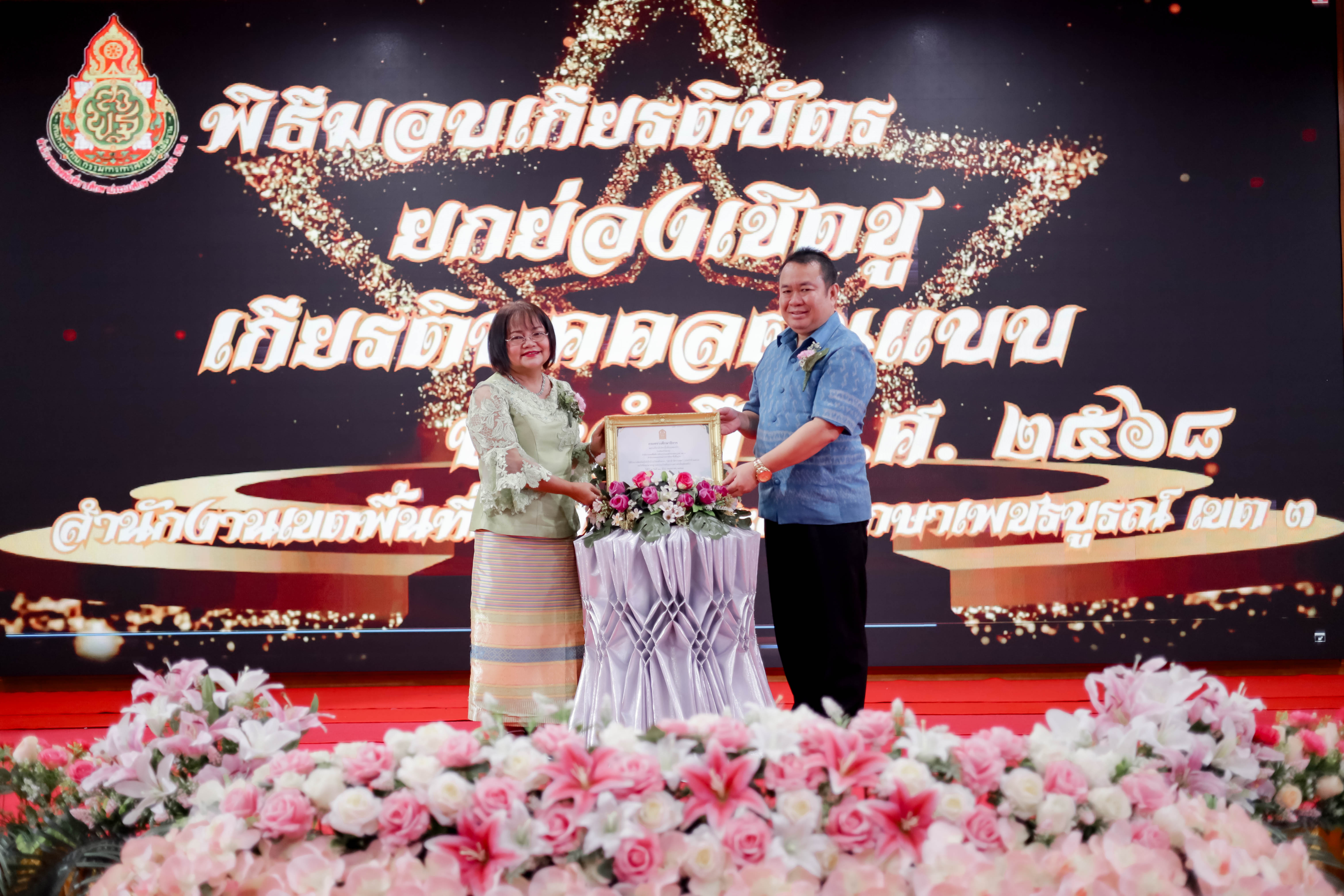 วันอังคารที่ 30 กันยายน พ.ศ. 2568 เวลา 08.30 น. นายทองเลื่อน บุญเพ็ง ผู้อำนวยการสำนักงานเขตพื้นที่การศึกษาประถมศึกษาเพชรบูรณ์ เขต 3 เป็นประธานในพิธี “ยกย่องเชิดชูเกียรติบุคคลต้นแบบ” ประจำปีงบประมาณ พ.ศ. 2568 พร้อมด้วย รอง ผอ.สพป.เพชรบูรณ์ เขต 3 ผู้อำนวยการกลุ่ม ข้าราชการครูและบุคลากรทางการศึกษา และแขกผู้มีเกียรติ โดยมี ผู้บริหารสถานศึกษา ข้าราชการครูและบุคลากรทางการศึกษาผู้ได้รับการยกย่องเชิดชูเกียรติ เข้าร่วม เพื่อยกย่องเชิดซูเกียรติแด่ข้าราชการครูและบุคลากรทางการศึกษาที่ได้สร้างคุณงามความดี ปฏิบัติหน้าที่ราชการด้วยความวิริยะ อุตสาหะ เป็นแบบอย่างที่ดีแก่ข้าราชการครูและบุคลากรทางการศึกษา ณ ห้องประชุมวิเชียรบุรี สำนักงานเขตพื้นที่การศึกษาประถมศึกษาเพชรบูรณ์ เขต 3