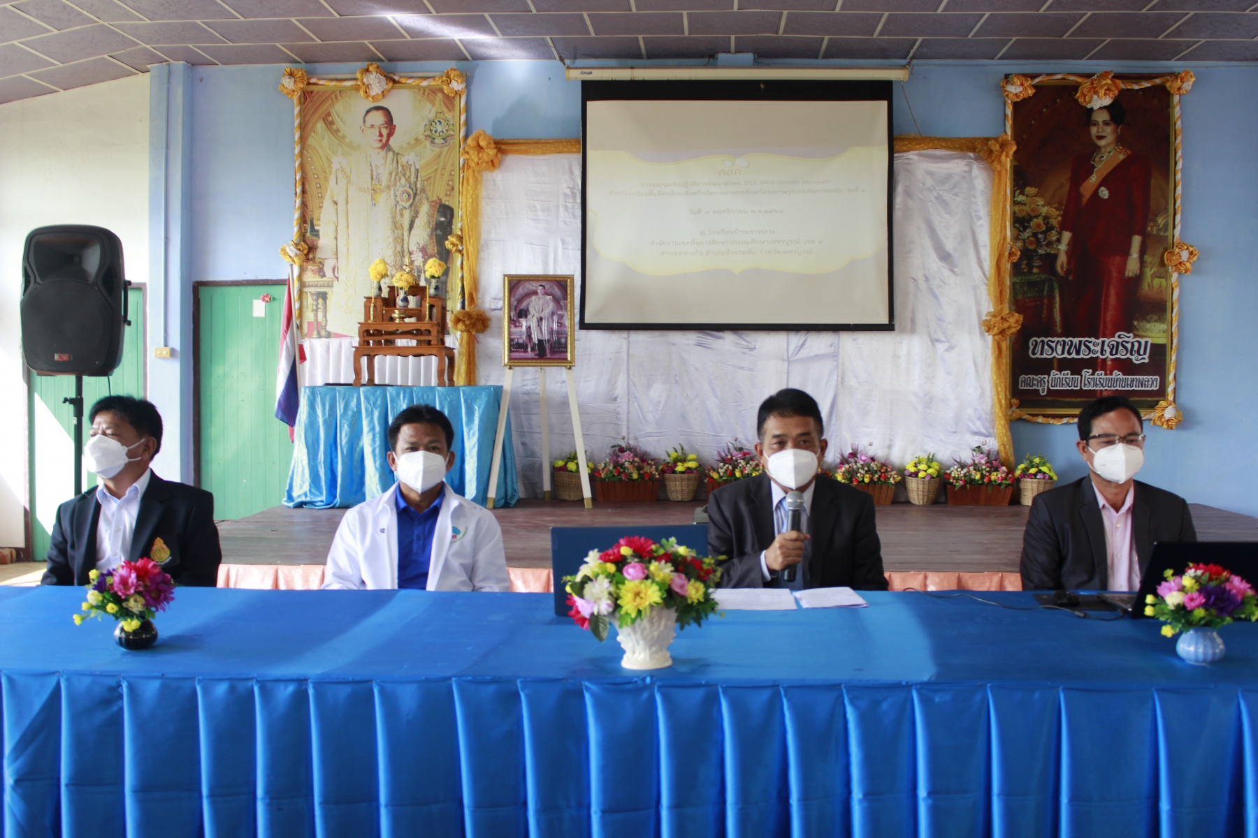 //  วันอังคารที่ 9 พฤศจิกายน พ.ศ. 2564 เวลา 09.00 น. นายรพีพงศ์ วรวัฒน์ธนากุล ผู้อำนวยการสำนักงานเขตพื้นที่การศึกษาประถมศึกษาเพชรบูรณ์ เขต 3 เป็นประธานพิธีเปิดการประชุมปฏิบัติการพัฒนาทักษะ ( PLC With Growth Mindset) สำหรับโรงเรียนในพื้นที่ห่างไกล โครงการครูรัก(ษ์)ถิ่น ภาคเหนือ รุ่นที่ ๒ โดยมี ทีมหนุนส่งเสริมครูรัก(ษ์)ถิ่น จังหวัดเพชรบูรณ์ ผู้อำนวยการโรงเรียน ข้าราชการครูบุคลากรทางการศึกษา โรงเรียนพื้นที่ห่างไกล เข้าร่วมประชุม เพื่อสร้างโอกาสทางการศึกษาโครงการครูรัก(ษ์)ถิ่น ภาคเหนือ รุ่นที่ ๒ ณ โรงเรียนบ้านเขาพลวง อำเภอบึงสามพัน จังหวัดเพชรบูรณ์