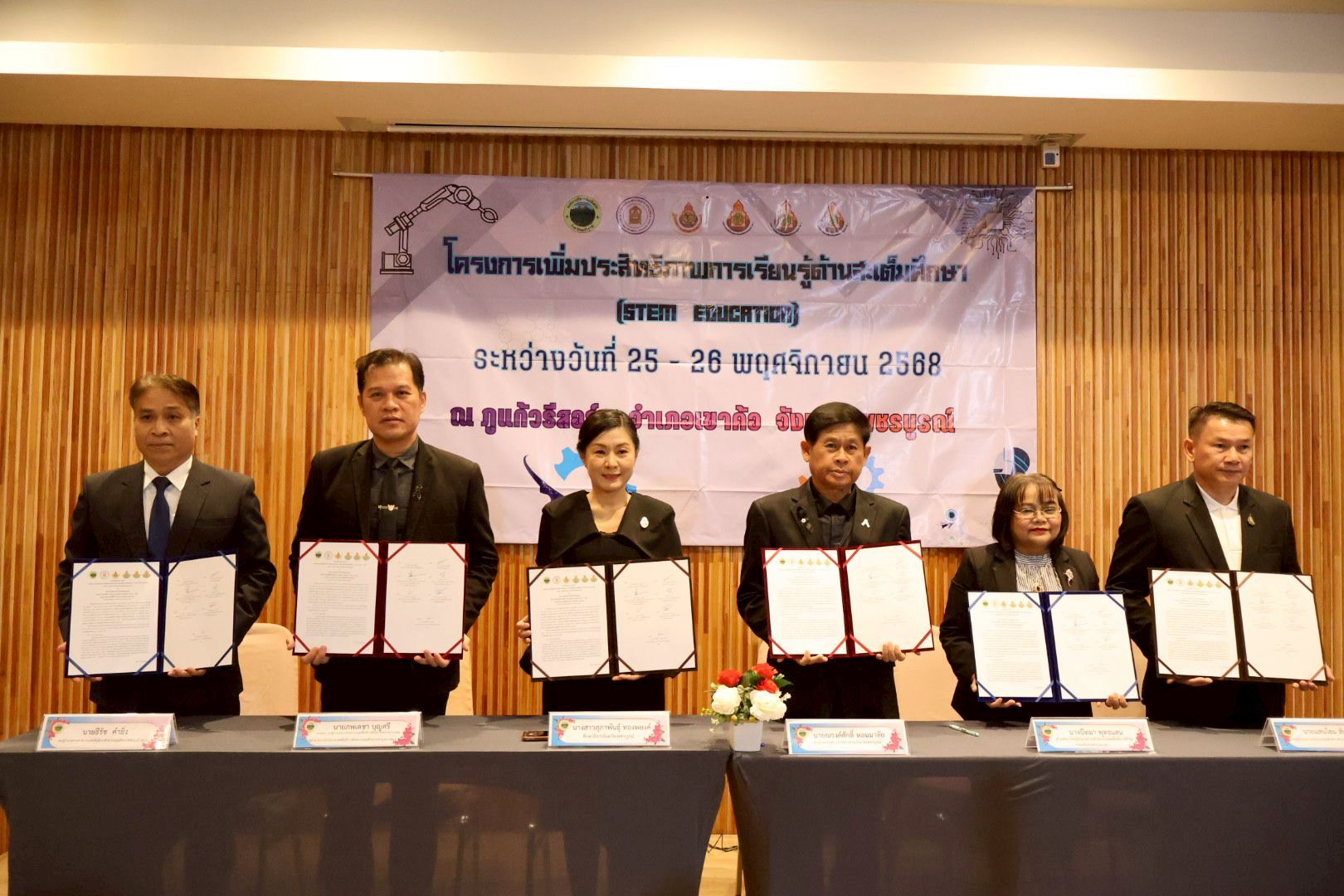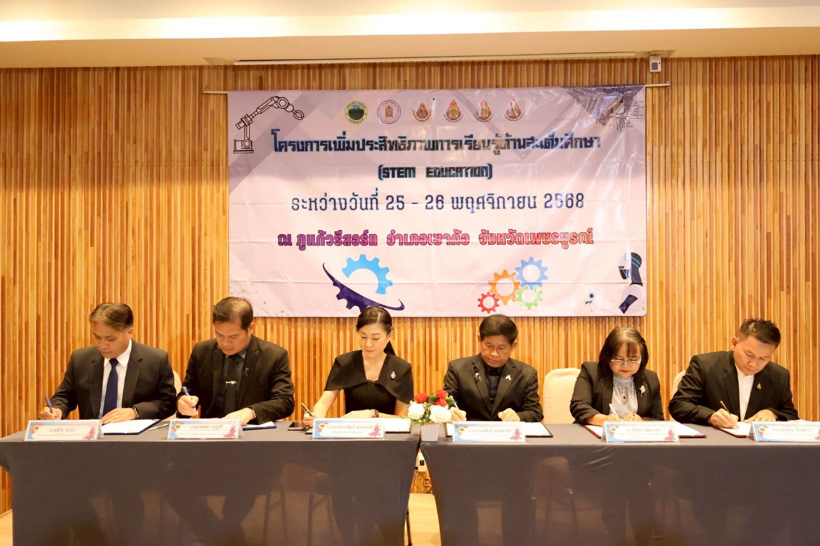 วันอังคารที่ 25 พฤศจิกายน พ.ศ. 2568 เวลา 13.30 น. นายทองเลื่อน บุญเพ็ง ผู้อำนวยการสำนักงานเขตพื้นที่การศึกษาประถมศึกษาเพชรบูรณ์ เขต 3 มอบหมายให้ นางปัทมา พุทธแสน รอง ผอ.สพป.เพชรบูรณ์ เขต 3 ร่วมพิธีเปิดโครงการเพิ่มประสิทธิภาพการเรียนรู้ด้านสะเต็มศึกษา (STEM EDUCATION) และร่วมลงนามบันทึกข้อตกลง (MOU) โดยมี นายณรงค์ศักดิ์ หอมมาลัย รองนายกองค์การบริหารส่วนจังหวัดเพชรบูรณ์ เป็นประธานในการลงนาม ฯ ร่วมกับหน่วยงานทางการศึกษาในจังหวัดเพชรบูรณ์ เพื่อเป็นการเพิ่มประสิทธิภาพให้กับนักเรียนในเขตจังหวัดเพชรบูรณ์ ให้มีการพัฒนาทักษะด้านโค้ดดิ้งหุ่นยนต์และไมโครบิท การเรียนรู้ด้านวิทยาศาสตร์ เทคโนโลยี วิศวกรรม และคณิตศาสตร์ การโค้ดดิ้ง โดยมีโรงเรียนที่เข้าร่วมโครงการในครั้งนี้จำนวน 15 โรงเรียน ณ ภูแก้วรีสอร์ท อ.เขาค้อ จ.เพชรบูรณ์