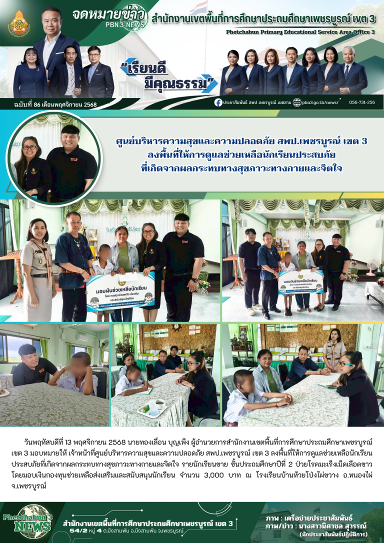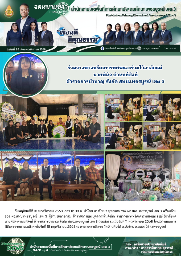 วันศุกร์ที่ 7 กรกฎาคม พ.ศ. 2566 เวลา 07.30 น. ดร.วิทยา ทัศมี ผู้อำนวยการสำนักงานเขตพื้นที่การศึกษาประถมศึกษาเพชรบูรณ์ เขต 3 พร้อมด้วย รอง ผอ.สพป.เพชรบูรณ์ เขต 3 นำบุคลากรในสังกัด ผู้บริหารสถานศึกษา ร่วมพิธีทำบุญตักบาตร แด่พระสงฆ์ จำนวน 9 รูป ณ บริเวณ ห้องประชุมวิเชียรบุรี สพป.เพชรบูรณ์ เขต 3 เนื่องในโอกาสวันคล้ายวันสถาปนาสำนักงานคณะกรรมการการศึกษาขั้นพื้นฐาน (สพฐ ) ครบรอบ 20 ปี หลังจากนั้นร่วมรับชมวิดีทัศน์เกี่ยวกับความเป็นมา และความก้าวหน้าในการดำเนินงานของ สพฐ. ผ่านระบบ ZOOM MEETING ณ ห้องประชุมวิเชียรบุรี สพป.เพชรบูรณ์ เขต 3