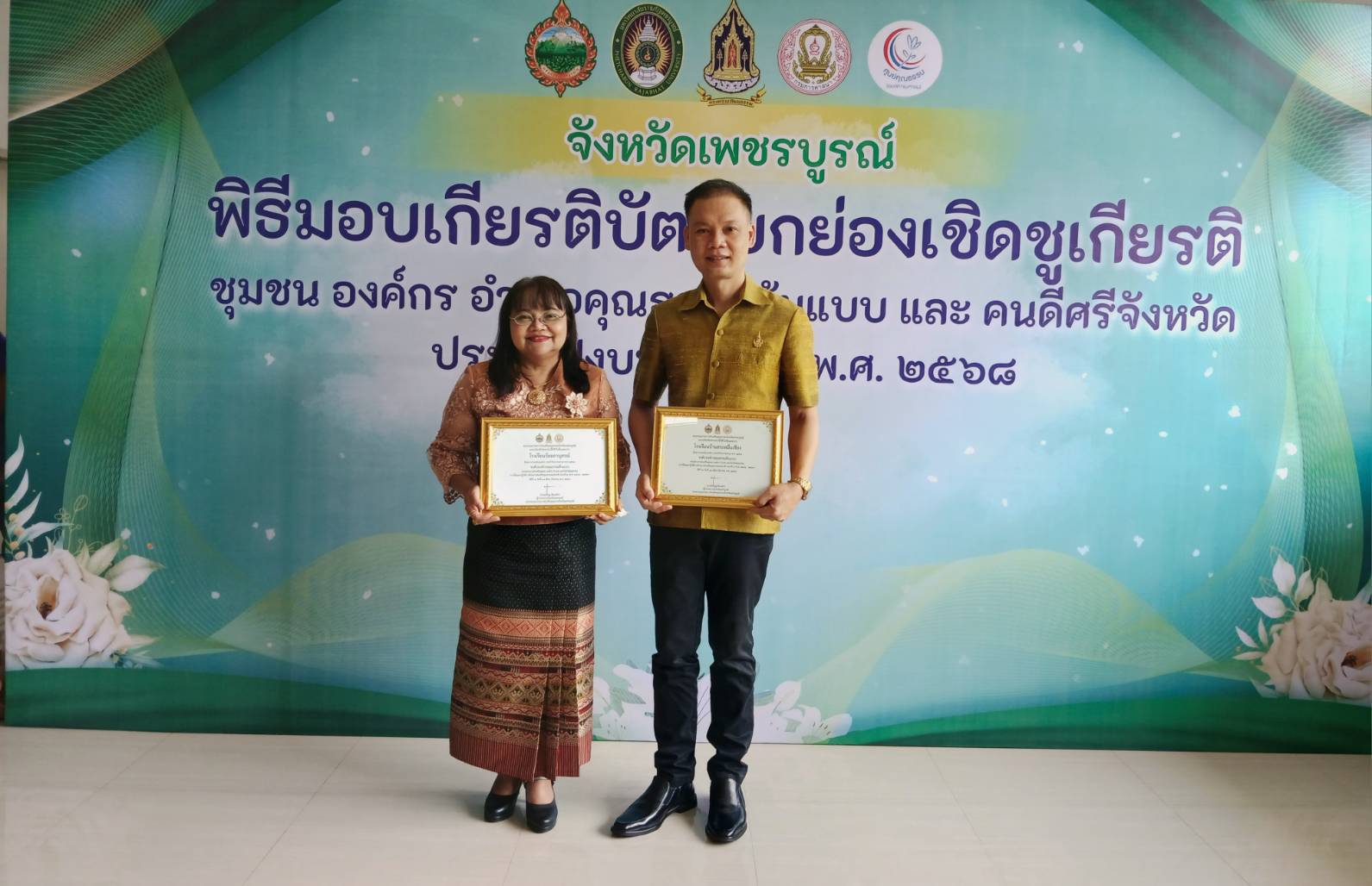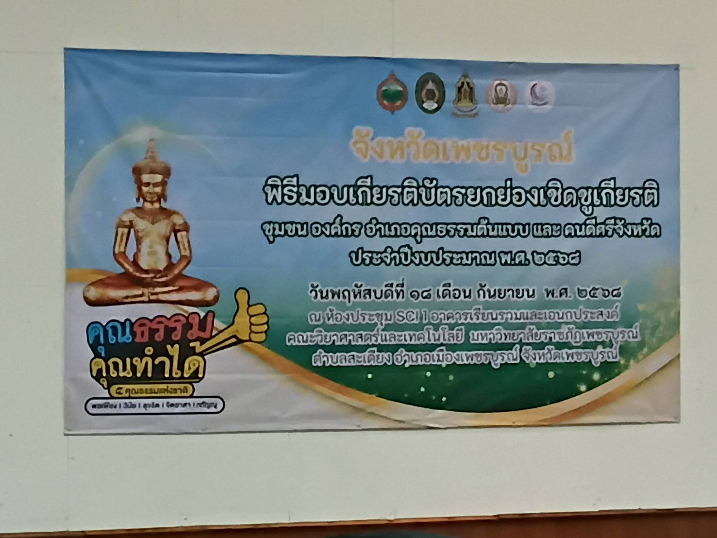 วันพฤหัสบดีที่ 18 กันยายน พ.ศ. 2568 นายทองเลื่อน บุญเพ็ง ผู้อำนวยการสำนักงานเขตพื้นที่การศึกษาประถมศึกษาเพชรบูรณ์ เขต 3 มอบหมายให้ นางปัทมา พุทธแสน รอง ผอ. สพป.เพชรบูรณ์ เขต 3 เข้ารับเกียรติบัตรชุมชน องค์กร อำเภอคุณธรรมต้นแบบ ประจำปีงบประมาณ พ.ศ. 2568 (ประเภทองค์กร) ในพิธีมอบเกียรติบัตรยกย่องเชิดชูเกียรติบุคคล องค์กร อำเภอคุณธรรม และคนดีศรีจังหวัด ประจำปีงบประมาณ พ.ศ. 2568 โดยมี นายวิศิษฐ์ เบญจพิทักษ์กุล รองผู้ว่าราชการจังหวัดเพชรบูรณ์ เป็นประธานในพิธีมอบเกียรติบัตร ณ ห้องประชุม SCI 2 อาคารเรียนรวมและเอนกประสงค์ คณะวิทยาศาสตร์และเทคโนโลยี มหาวิทยาลัยราชภัฏเพชรบูรณ์ ตำบลสะเดียง อำเภอเมืองเพชรบูรณ์ จังหวัดเพชรบูรณ์