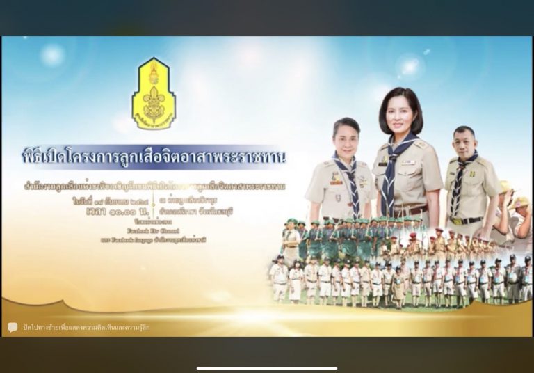 วันเสาร์ที่ 18 กันยายน พ.ศ. 2564 เวลา 10.00 น. ดร.ไท พานนนท์ ผู้อำนวยการสำนักงานเขตพื้นที่การศึกษาประถมศึกษาเพชรบูรณ์ เขต 3 พร้อมด้วย นายสมหมาย ถาวรกูล รอง ผอ.สพป.เพชรบูรณ์ เขต 3 และบุคลากรทางการลูกเสือจังหวัดเพชรบูรณ์ เข้าร่วม ร่วมพิธีเปิดฝึกอบรมวิทยากรแกนนำ ลูกเสือจิตอาสาพระราชทาน ระดับจังหวัด ผ่านระบบออนไลน์ เพื่อส่งเสริมให้ลูกเสือและบุคลากรทางการลูกเสือได้เสริมสร้างจิตสำนึกความเป็นพลเมืองที่เ