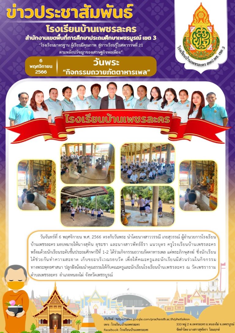 กิจกรรมเข้าแถวเคารพธงชาติ และสวดมนต์ไหว้พระ ประจำวันที่ 6 พฤศจิกายน พ.ศ.2566