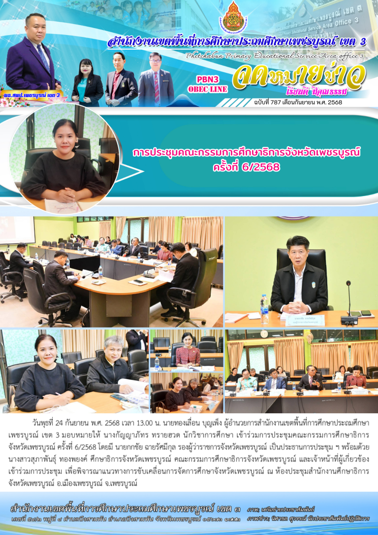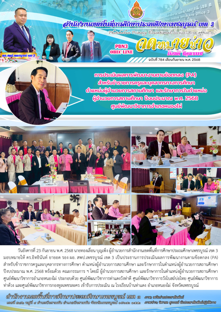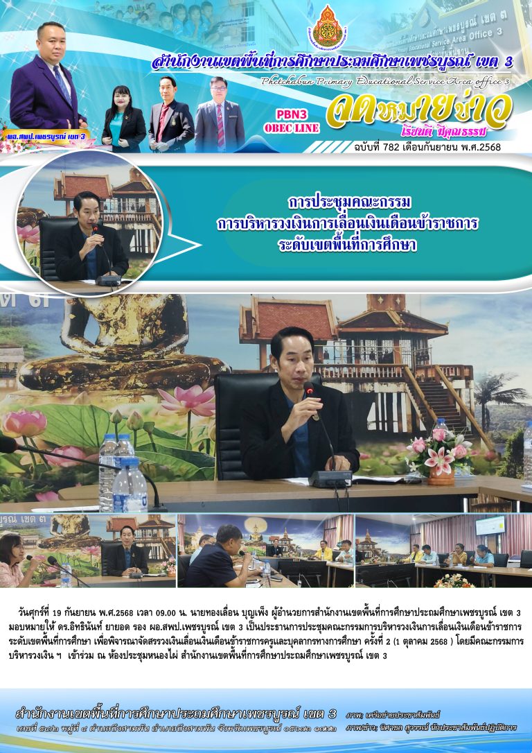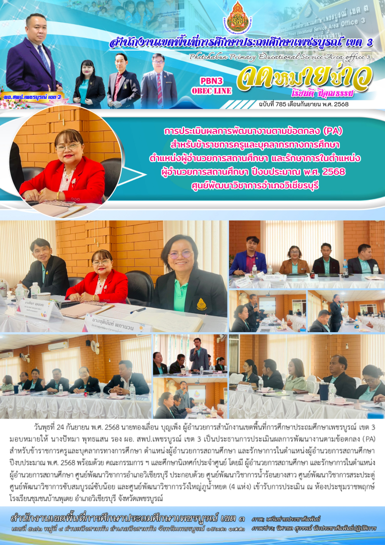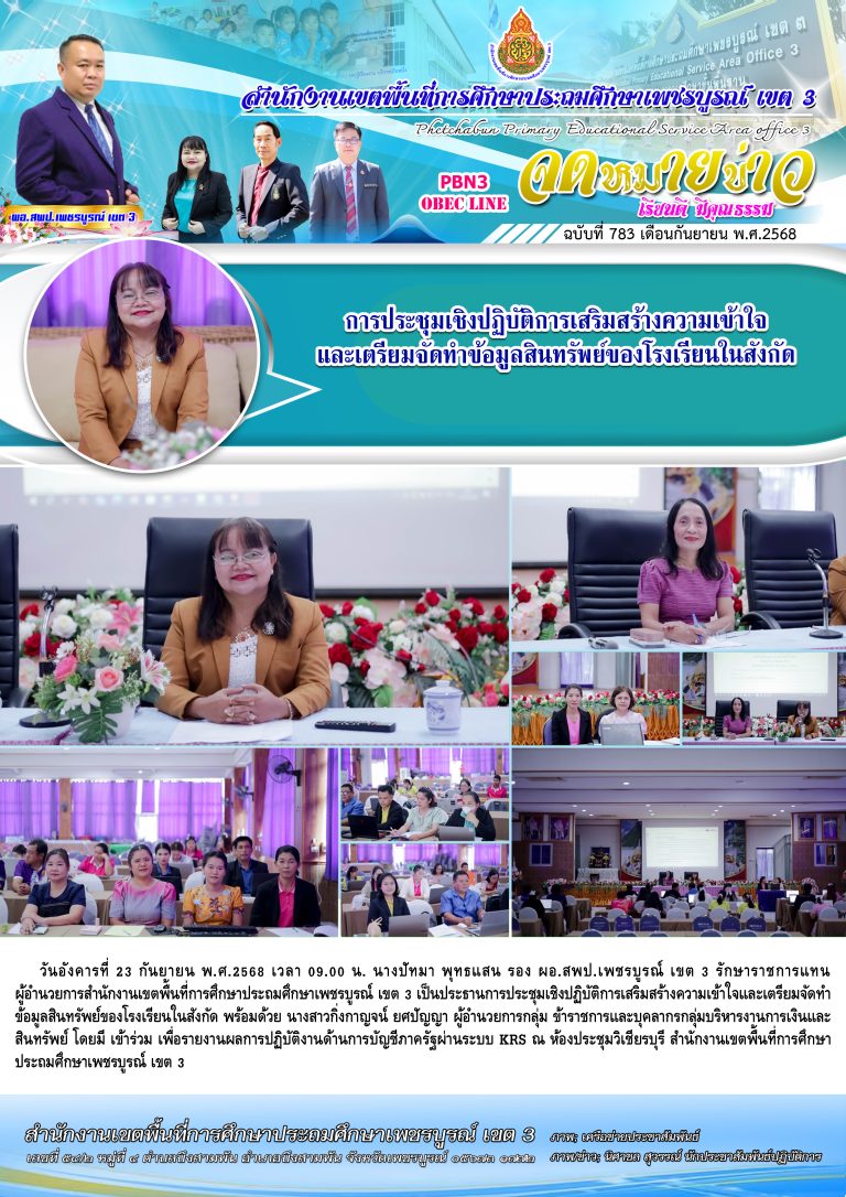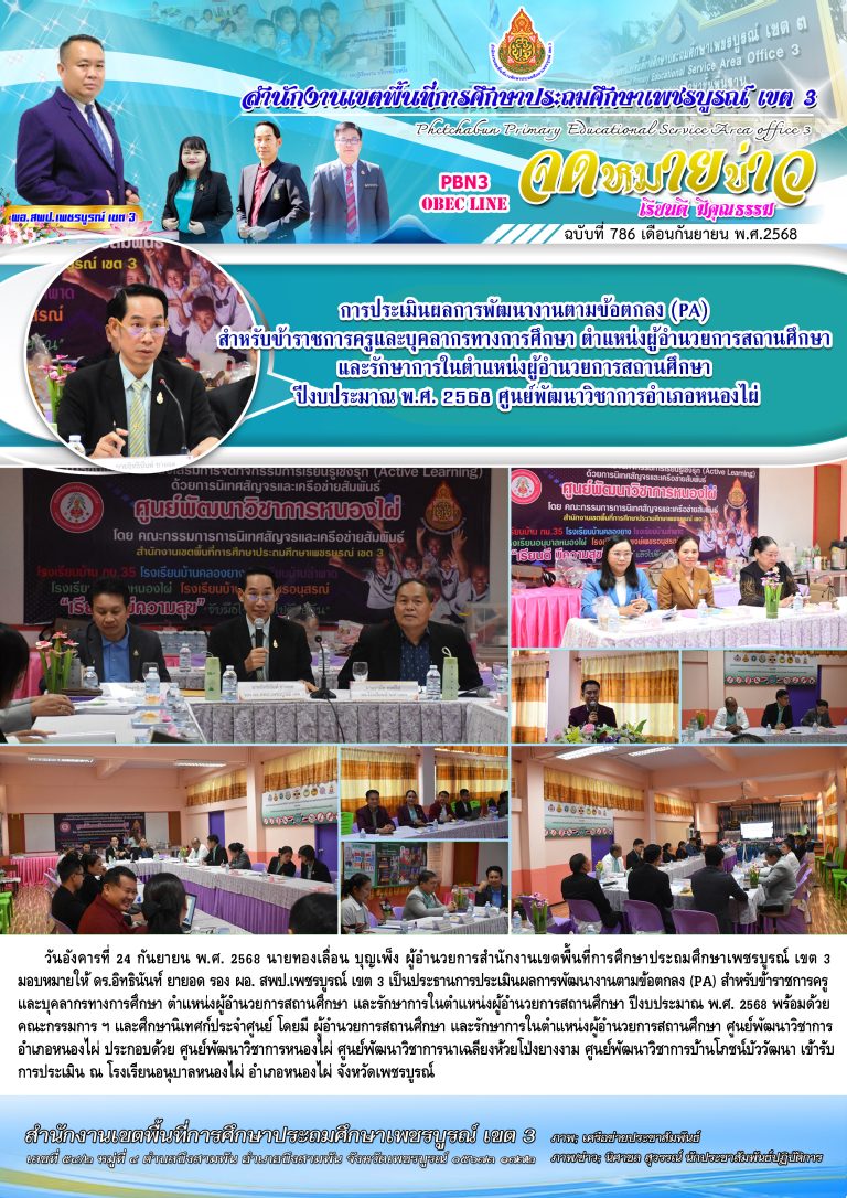 วันพฤหัสบดีที่ 25 กันยายน พ.ศ. 2568 นายทองเลื่อน บุญเพ็ง ผู้อำนวยการสำนักงานเขตพื้นที่การศึกษาประถมศึกษาเพชรบูรณ์ เขต 3 มอบหมายให้ ดร.อิทธินันท์ ยายอด รอง ผอ. สพป.เพชรบูรณ์ เขต 3 เข้าร่วมการประชุมสัมมนาผู้อำนวยการสำนักงานเขตพื้นที่การศึกษาทั่วประเทศ ครั้งที่ 1/2568 โดยมี ศ.ดร.นฤมล ภิญโญสินวัฒน์ รัฐมนตรีว่าการกระทรวงศึกษาธิการ เป็นประธานในพิธีเปิด พร้อมด้วย ผู้บริหารระดับสูงของ สพฐ. และมีผู้อำนวยกา