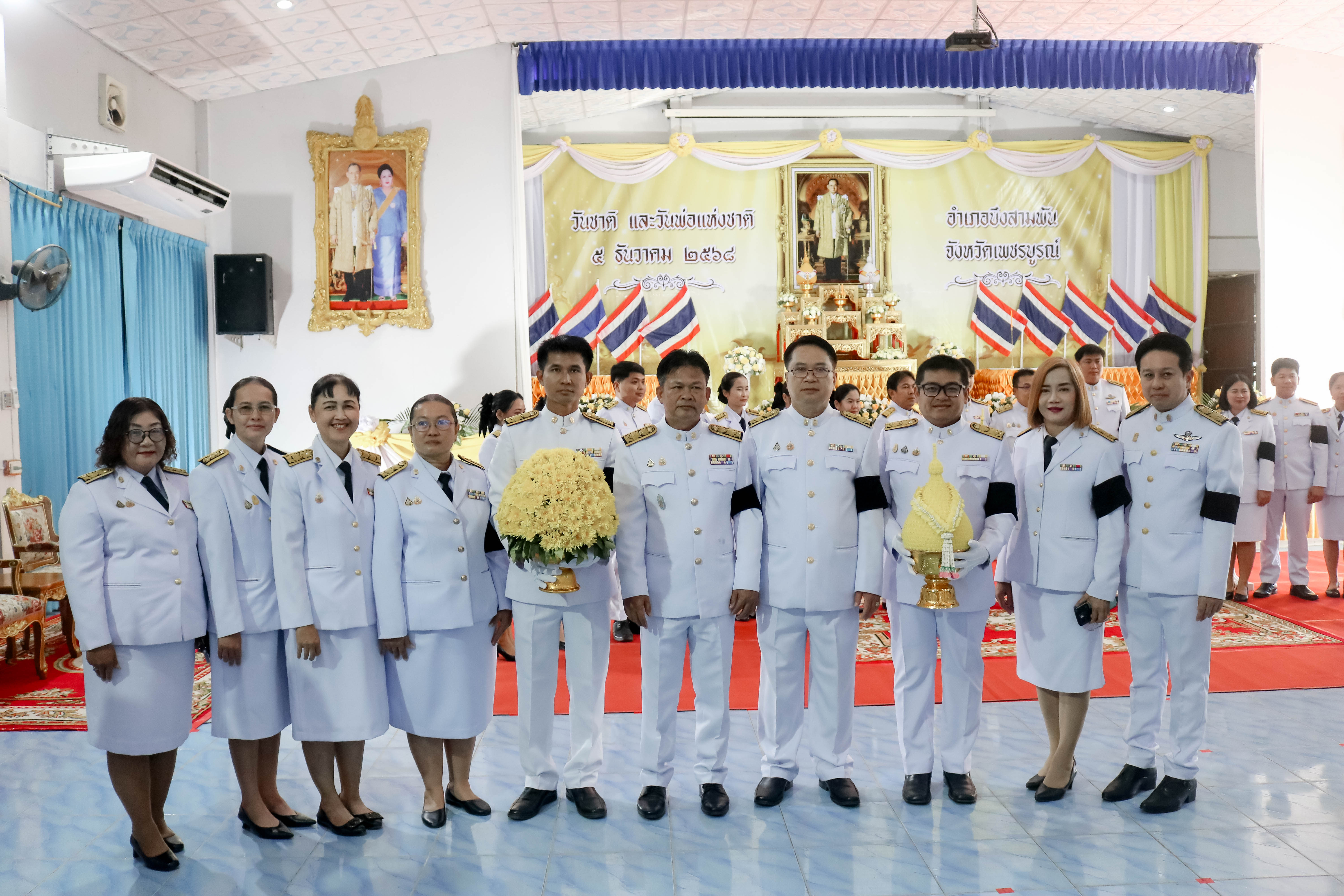 วันศุกร์ที่ 5 ธันวาคม พ.ศ.2568 เวลา 07.00น. นายทองเลื่อน บุญเพ็ง ผู้อำนวยการสำนักงานเขตพื้นที่การศึกษาประถมศึกษาเพชรบูรณ์ เขต 3 มอบหมายให้ นายคำปุน เสนศรี รอง ผอ.สพป.เพชรบูรณ์ เขต 3 ผู้อำนวยการกลุ่ม ข้าราชการและบุคลากร สพป.เพชรบูรณ์ เขต 3 ร่วมกิจกรรมพิธีทำบุญตักบาตรถวายพระราชกุศล และพิธีวางพานพุ่มดอกไม้และพิธีถวายบังคม ในงานวันชาติและวันพ่อแห่งชาติ พุทธศักราช 2568 เนื่องในวันคล้ายวันพระราชสมภพ พระบาทสมเด็จพระบรมชนกาธิเบศร มหาภูมิพลอดุลยเดชมหาราช บรมนาถบพิตร ณ ห้องประชุมโรงเรียนอนุบาลบึงสามพัน จังหวัดเพชรบูรณ์