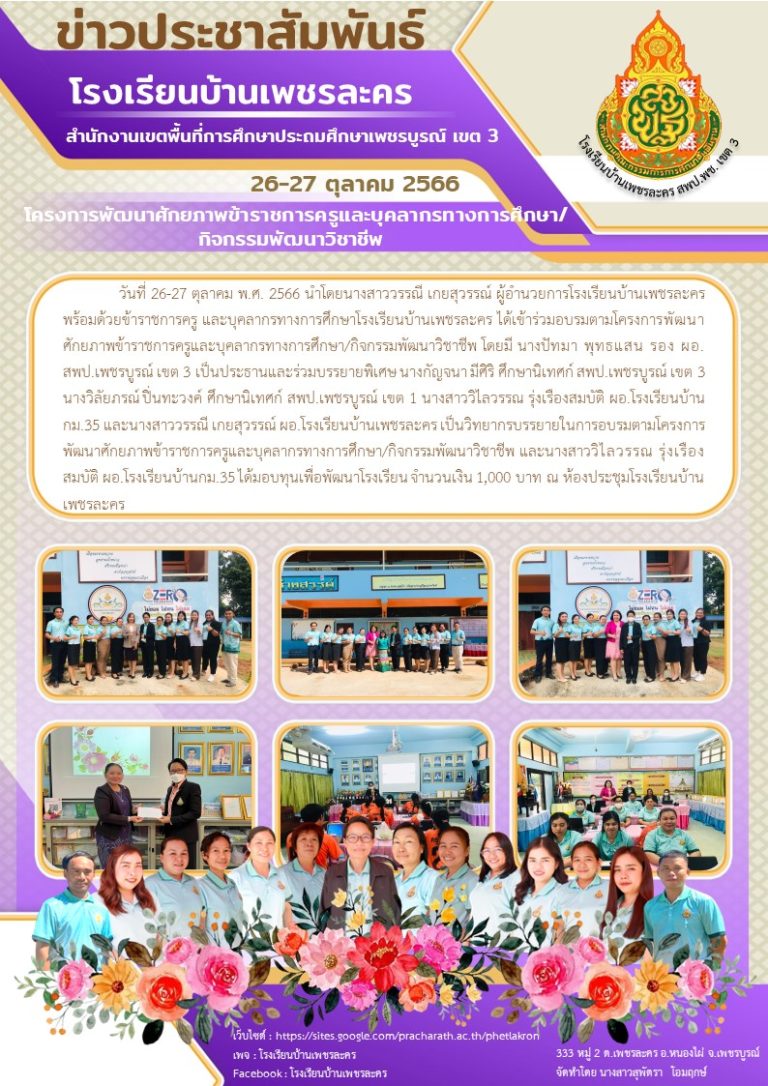 โรงเรียนบ้านเพชรละคร วันที่ 26-27 ตุลาคม 2566