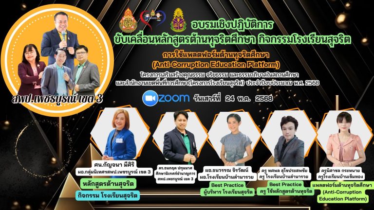 การอบรมเชิงปฎิบัติการ ขับเคลื่อนการดำเนินงานกิจกรรมโรงเรียนสุจริต ในโครงการเสริมสร้างคุณธรรม จริยธรรม และธรรมาภิบาลในสถานศึกษา และสำนักงานเขตพื้นที่การศึกษา(โครงการโรงเรียนสุจริต) ประจำปีงบประมาณ พ.ศ. 2568