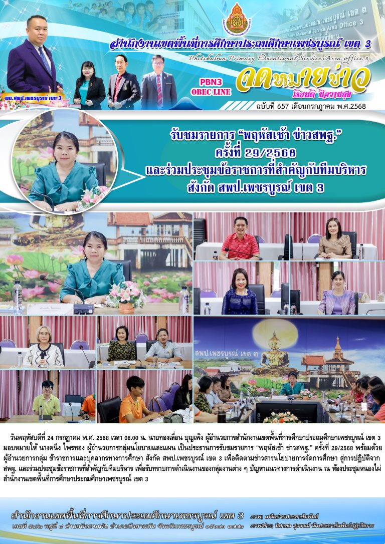 รับชมรายการ “พฤหัสเช้า ข่าวสพฐ.” ครั้งที่ 47/2568 และร่วมประชุมข้อราชการที่สำคัญกับบุคลากร สังกัด สพป.เพชรบูรณ์ เขต 3 ครั้งที่ 1/2569
